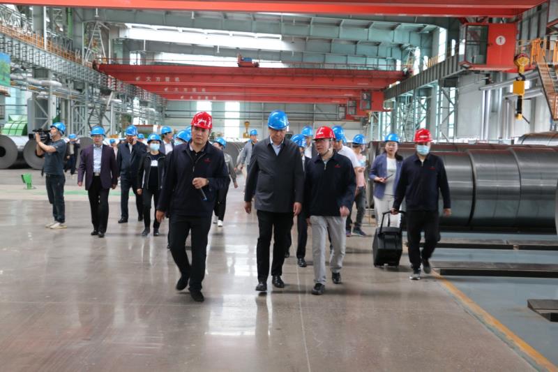 5月21日上午,觀摩團一行在市委常委、統(tǒng)戰(zhàn)部部長孟和巴特爾的帶領下來到我公司。公司總經(jīng)理佟國山、黨委書記劉欣、黨委副書記李曉杰在現(xiàn)場迎接,并陪同觀摩團參觀了公司年產(chǎn)200萬噸冷軋鍍鋅一期項目。劉欣書記代表公司詳細介紹了該項目的生產(chǎn)工藝流程,讓觀摩團成員了解了黑色的熱軋帶鋼蛻變?yōu)楣饬恋腻冧\帶鋼的過程。